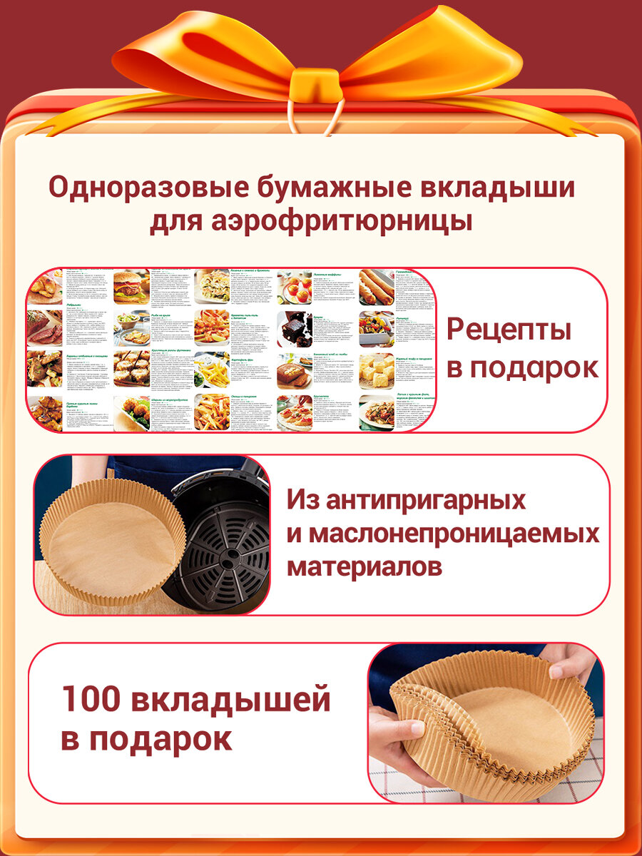 Аэрогриль электрический KaringBee JD1189 черынй(ЕАС) /100 вкладышей в подарок/8 программ/Мультипечь для кухни 1400 Вт 7 490 ₽