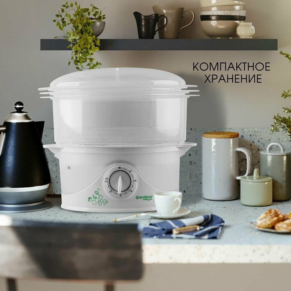10 цен на Пароварка Endever Vita-177, электрическая, 1000 Вт, 9 л, 3 яруса, белая
