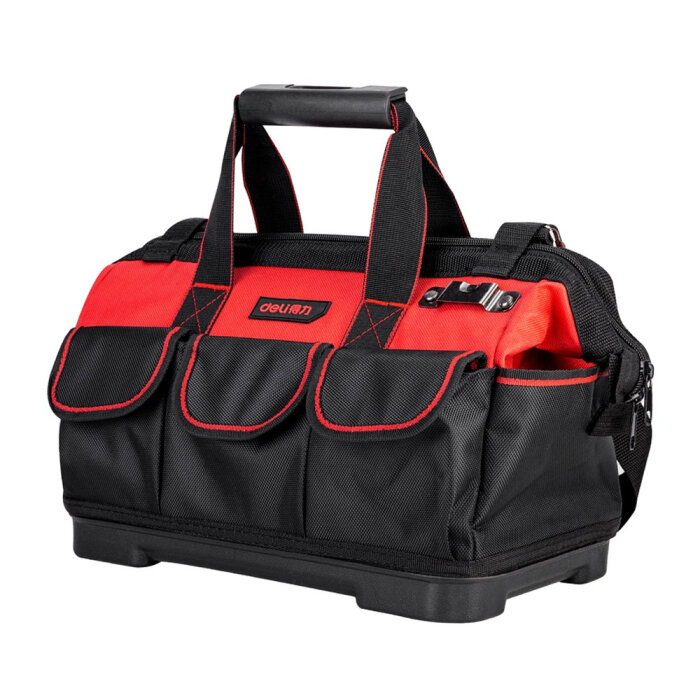 Отзывы на Сумка для инструментов с жестким пластиковым дном Deli DL430316 390 x 200 x 280мм, 14 карманов, плечевой ремень, ткань Оксфорд 1680D