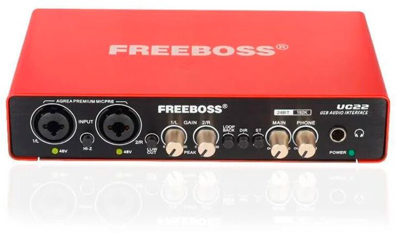 FREEBOSS UC22 Аудиоинтерфейс 24 бит/192 кГц, 2 входа, + 48 В. информация: