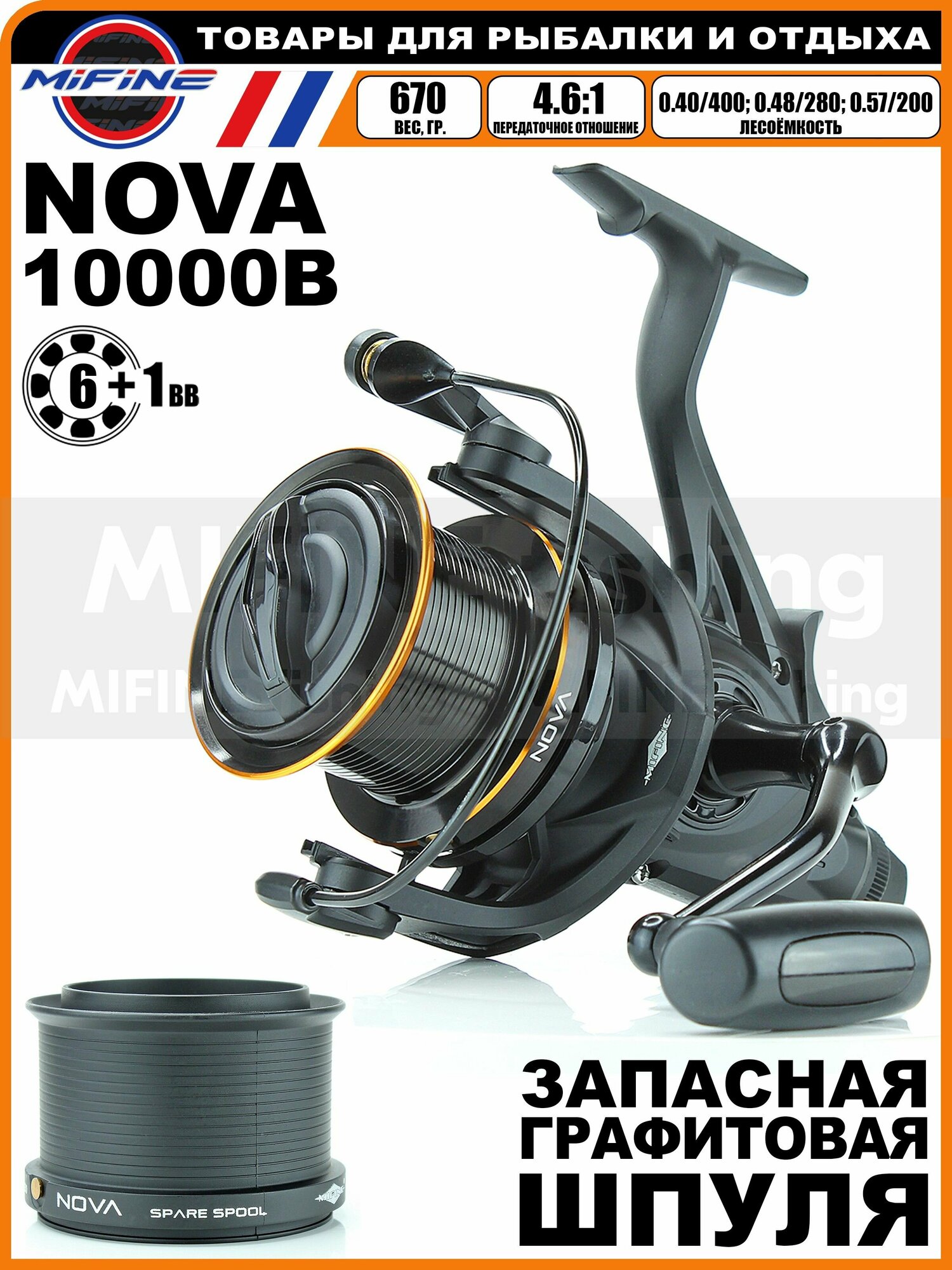 10 цен на Катушка рыболовная карповая с байтранером Mifine NOVA 10000B (7 подшипников) новинка 2022 года / Фидерная / Безынерционная / Для рыбалки / Для фидера / Ловля сазана / Ловля карпа