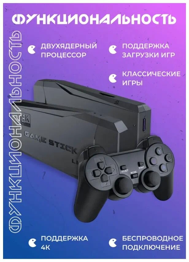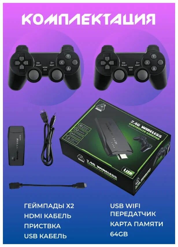 Игровая приставка, консоль Game Stick Lite 64Gb, 3555 игр, 4K, 2,4 ГГц, 8 бит, 16 бит, 32 бит