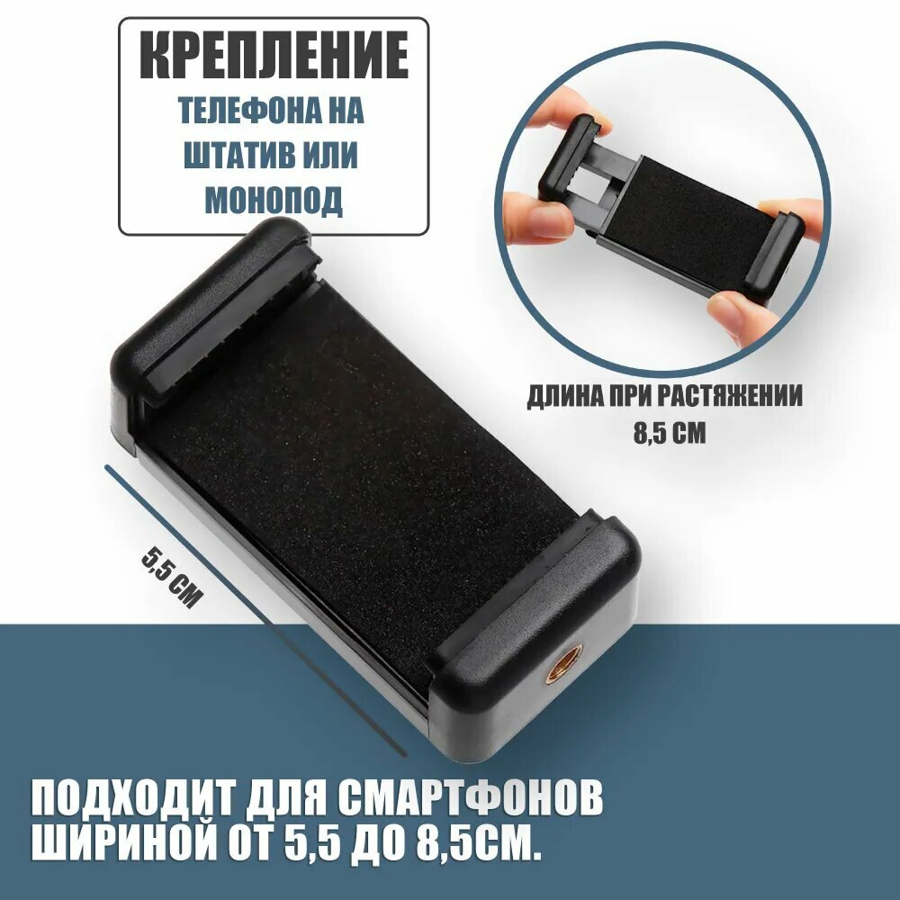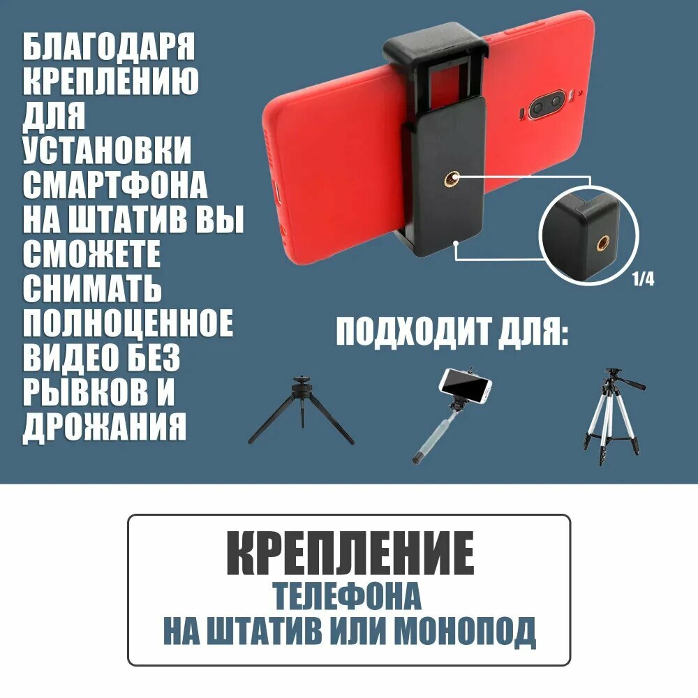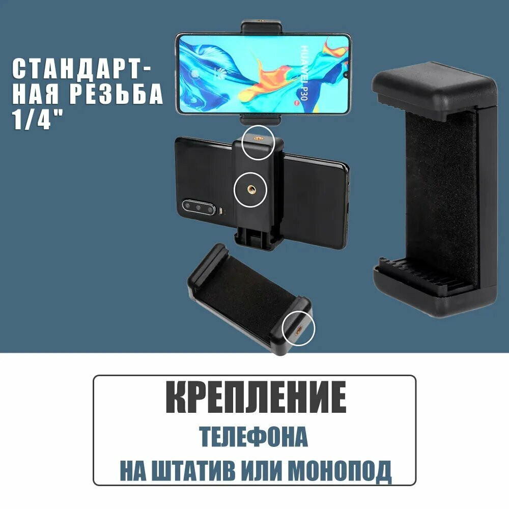 Держатель для телефона универсальный/ Крепление для смартфона к штативу/селфи палке/ триподу/крепление для штатива / держатель для штатива черный информация: