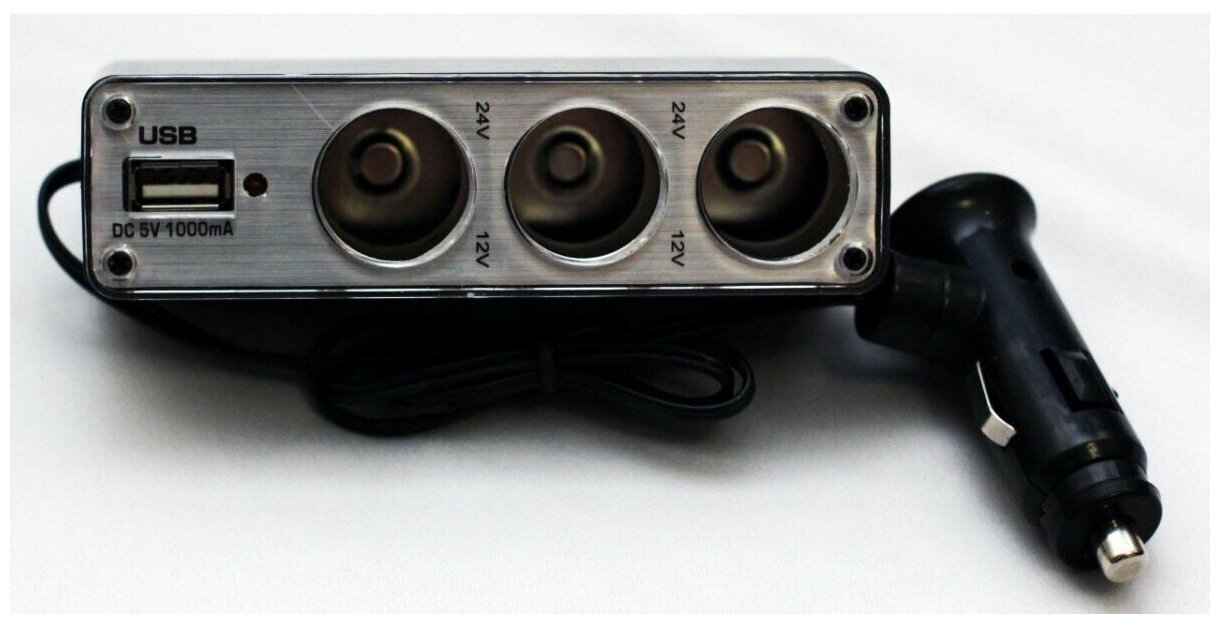 Автомобильное зарядное устройство разветвитель прикуривателя 24 / 12v на четыре гнезда + USB (1000 MA) MyPads