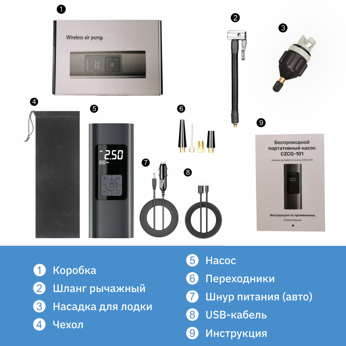 10 цен на Насос беспроводной для лодки ПВХ и автомобиля с функцией powerbank