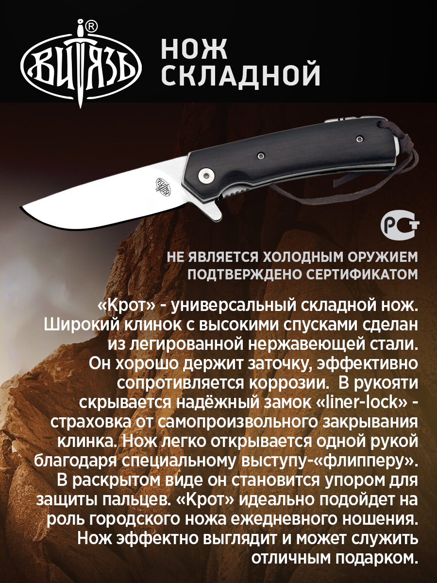 0 отзывов, средняя оценка 0. Чтобы купить «Нож складной витязь Крот B290-32» по лучшей цене мы сканируем авито, алиэкспресс, маркет, озон, савеловский, плеер, горбушку, беру, официальные сайты и находим минимальную. Администрация не несет ответсвенность актуальность цен на Нож складной витязь Крот B290-32, более подробно узнавайте на сайте магазина.