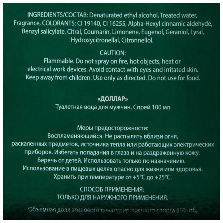 Dollar INTENSE PERFUME (Доллар двойной парфюм) Т/В муж. 100 мл