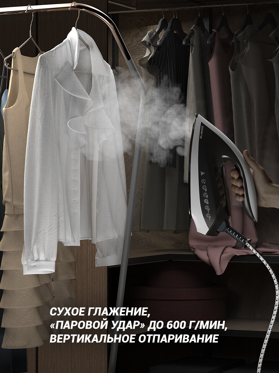 Парогенератор Polaris PSS 9090K Turbo Steam, паровой удар до 600 г/мин, 2600 Вт., белый/мокко 24 285 ₽