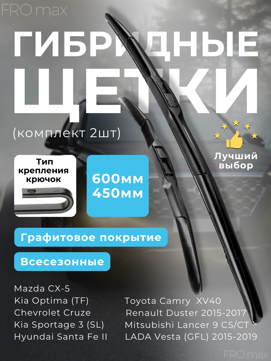 Щетки стеклоочистителя 600 и 450 мм ,2 шт,гибридные дворники,Мазда,Хендай ,Шевроле,Киа Тайота Камри,