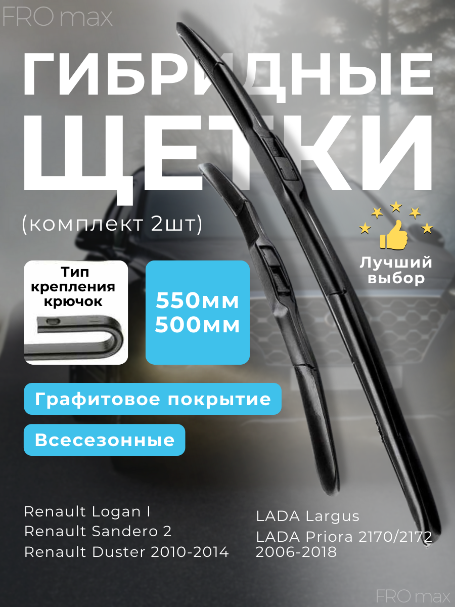 Щетки стеклоочистителя 550 и 500 мм, гибридные дворники , Рено Логан1 ,Дустер ,Сандеро 2,Лада Ларгус , Ваз ,Приора.