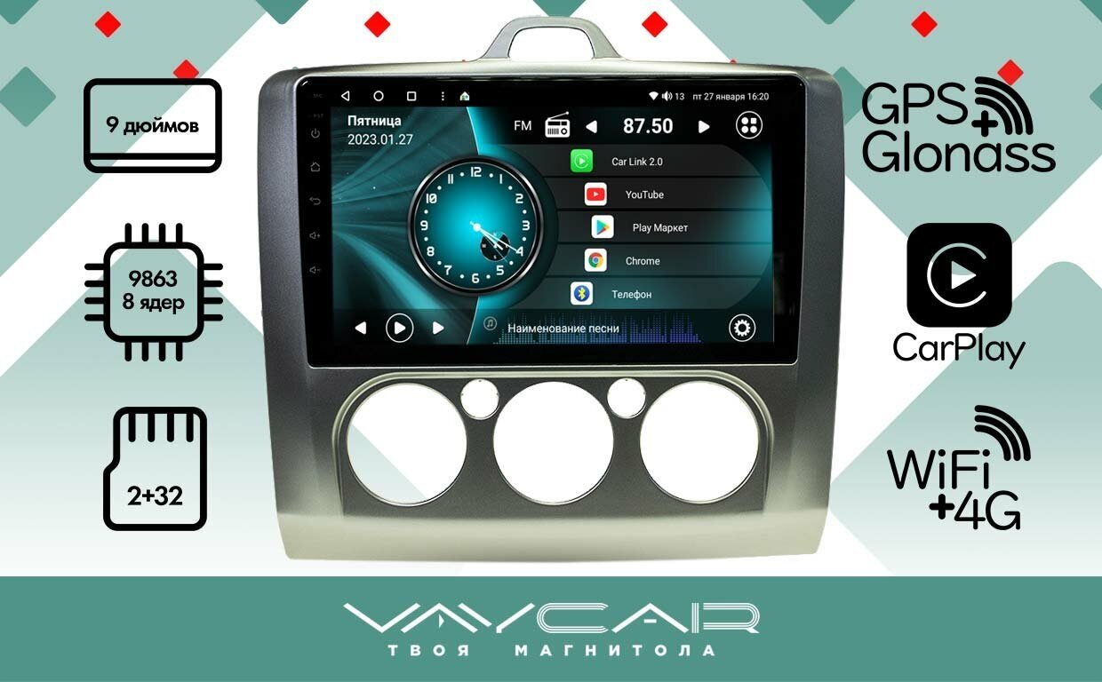 Магнитола Vaycar 09V2 для FORD Focus II 2005-2011 (Кондиционер) (Андроид, 2+32, 8 ядер, WiFi, BT, 4G, GPS, QLED 9") информация: