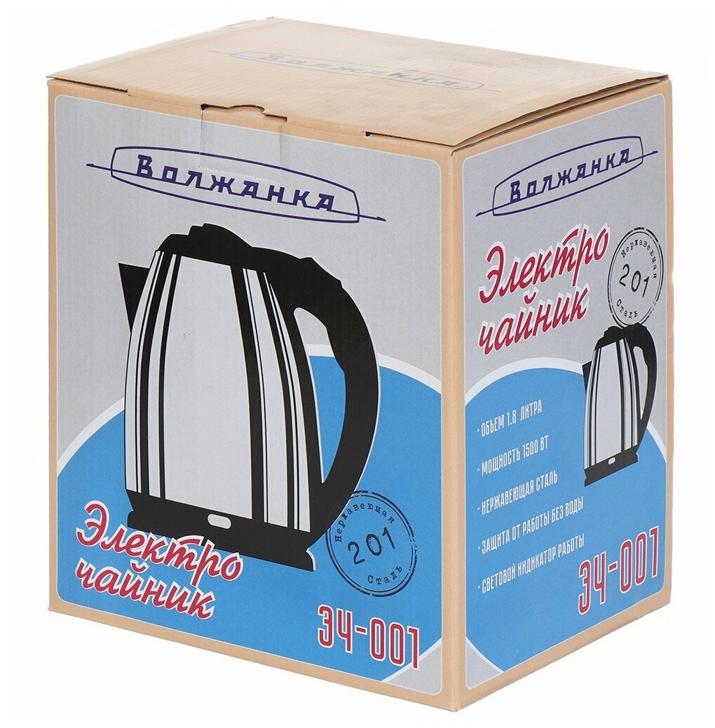 Чайник электрический Волжанка, Волжанка ЭЧ-001, 1.8 л, 1500 Вт, скрытый нагревательный элемент, нержавеющая сталь информация:
