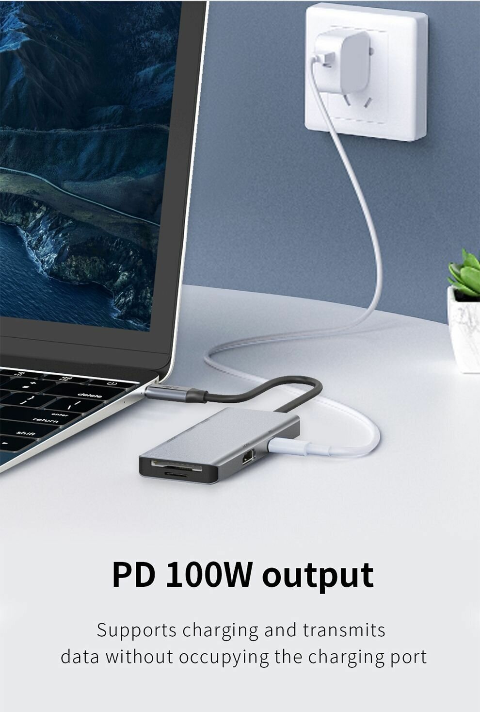 10 цен на Хаб Recci RH07 7 в 1 Type-C to USB3.0, 2xUSB2.0, HDMI, PD, SD+TF - Серый