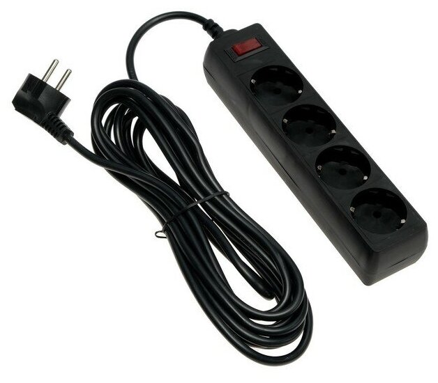 Сетевой фильтр Luazon Lighting, 4 розетки, 5 м, 2200 Вт, 3 х 0.75 мм2, 10 А, 220 В, черный 4457517 информация: