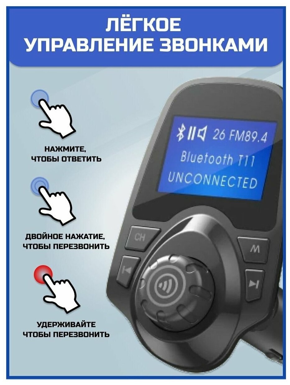 FM-трансмиттер BLUETOOTH T11 (SDHC, 2USB, AUX, HF, LED) черный информация: