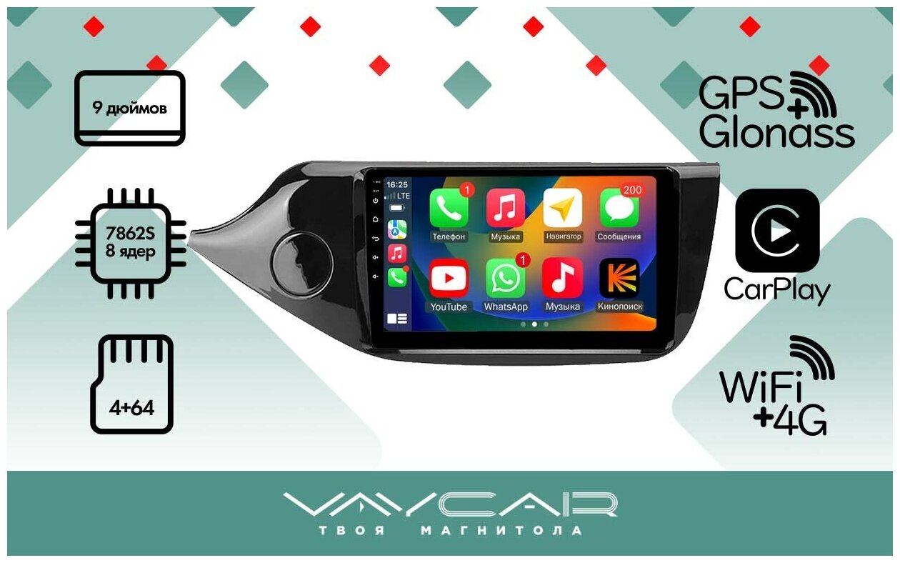 Магнитола Vaycar 09VO4 для KIA Ceed 2013-2018 (Андроид, 4+64, 8 ядер, WiFi, BT, 4G, GPS, QLED 9") информация: