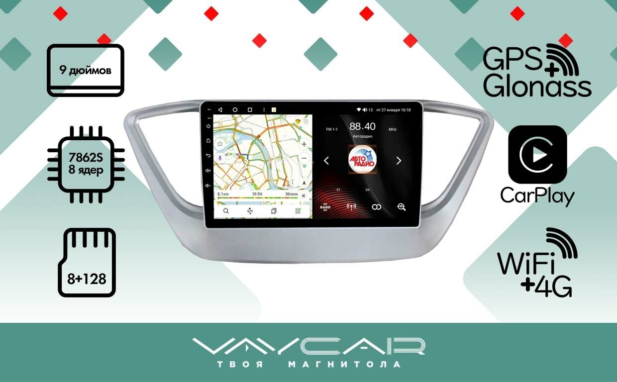Магнитола Vaycar 09VO4 для HYUNDAI Solaris 2017+ (Андроид, 4+64, 8 ядер, WiFi, BT, 4G, GPS, QLED 9")