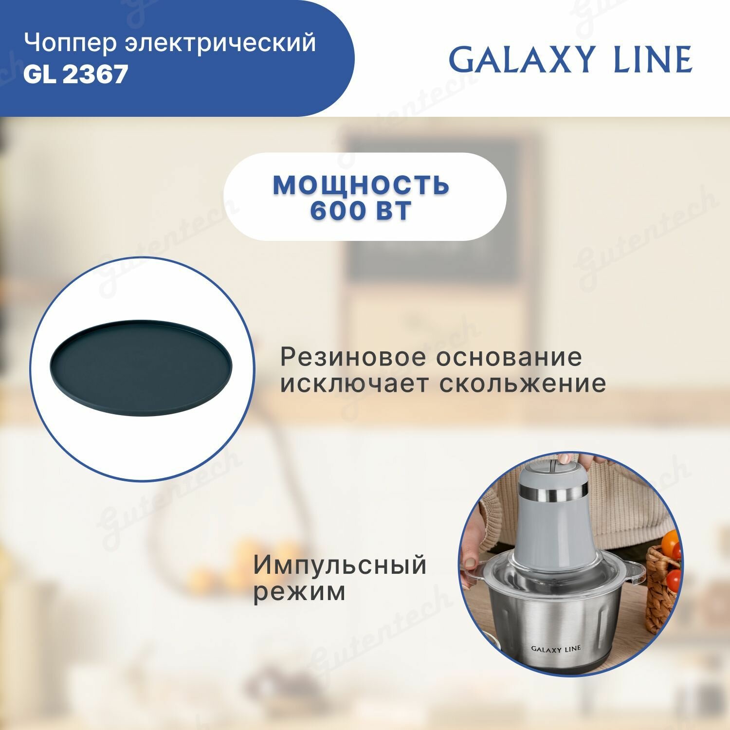 Чоппер , измельчитель электрический Galaxy LINE GL2367, серебро/серый