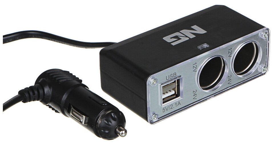 NG Разветвитель прикуривателя в авто, 2 гнезда, 2хUSB, 60 W, 2.1А, 12/24В, пластик