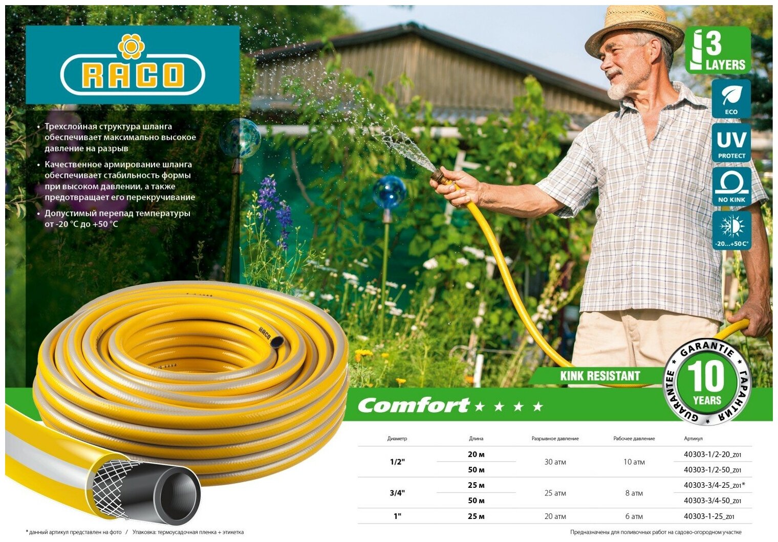 RACO COMFORT, 3/4″ 25 м, 25 атм, трёхслойный, армированный, поливочный шланг (40303-3/4-25)