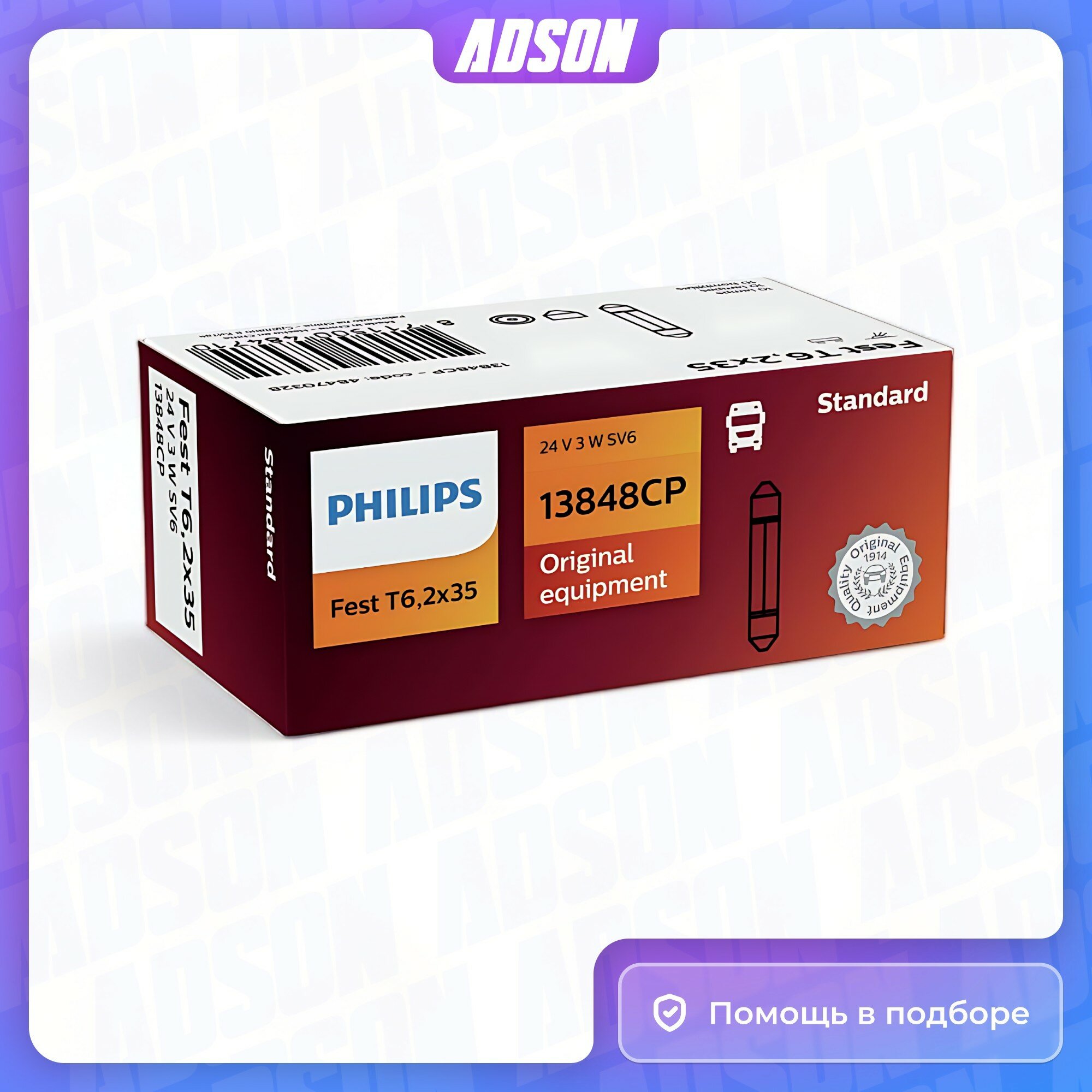 PHILIPS 13848CP Лампа PHILIPS галогеновая T6.2x35 SV6 3W информация: