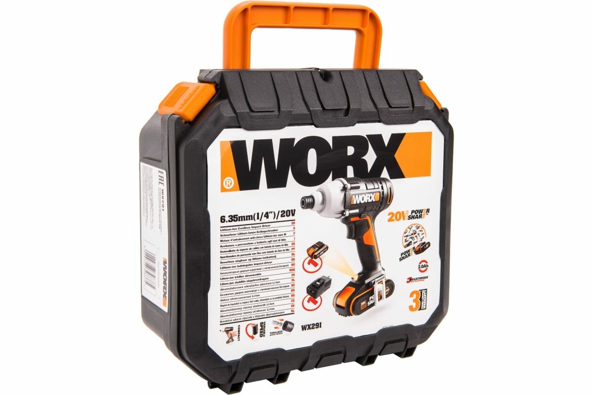 WORX Impact Винтоверт ударный аккумуляторный 20В 1х2Ач кейс WX291 информация: