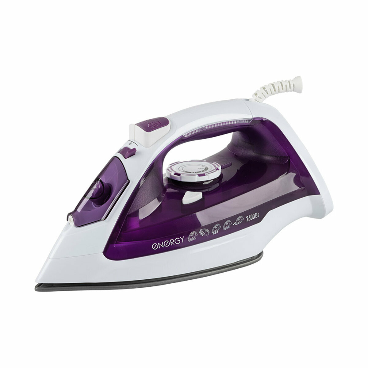 Утюг Energy En-348, 2600 Вт, керамическая подошва, 350 мл, бело-фиолетовый Energy 9750954 .