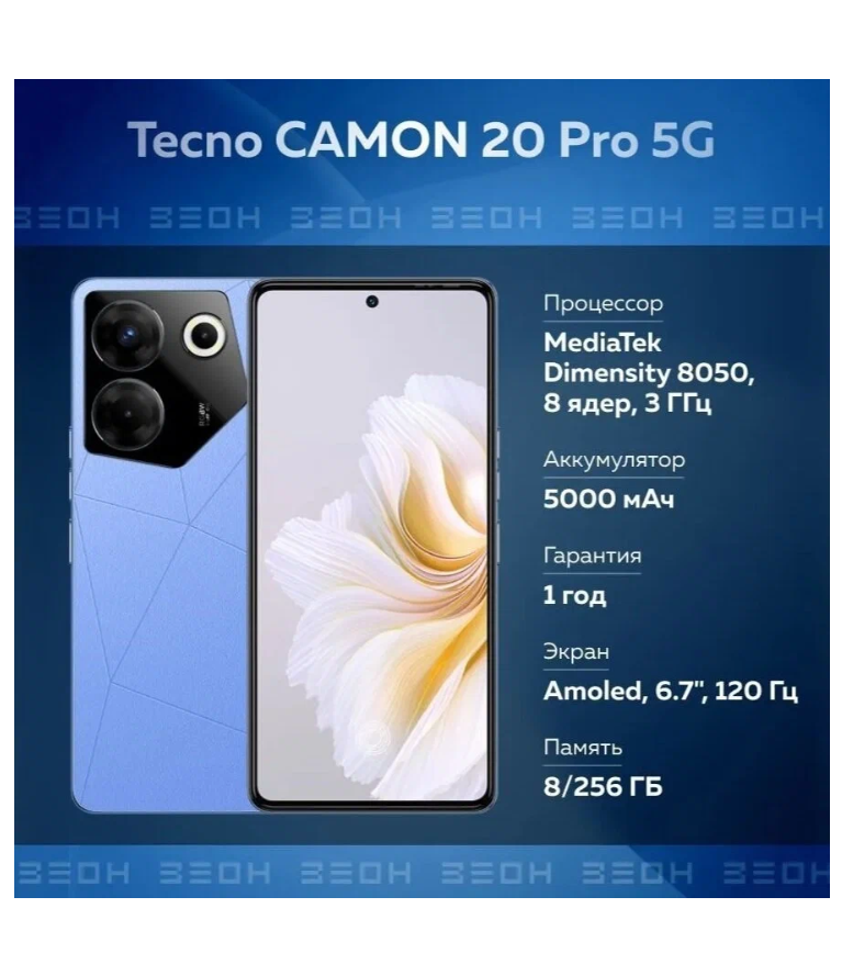 Смартфон Tecno CAMON 20 Pro 5G 8 ГБ 256 ГБ Blue информация: