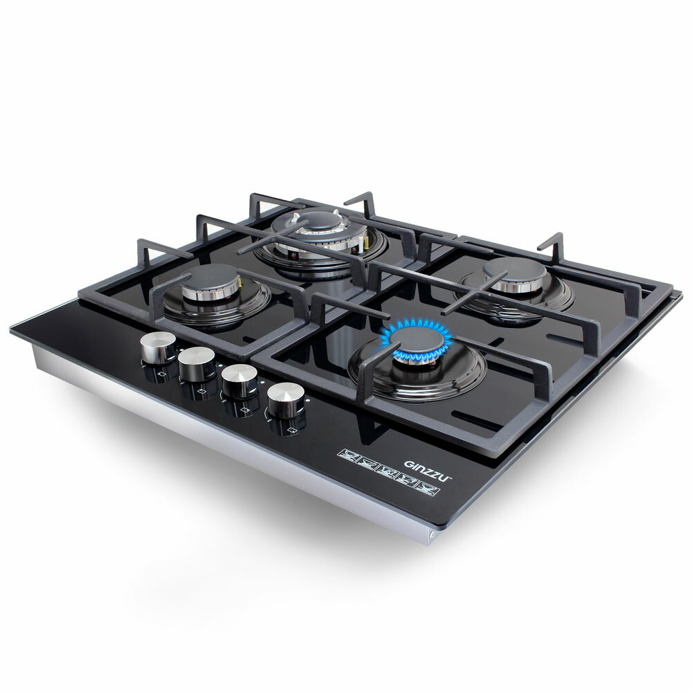 Варочная панель газовая Ginzzu HCG-469, стекло 4 конф, черная, эл. поджиг, газконтроль