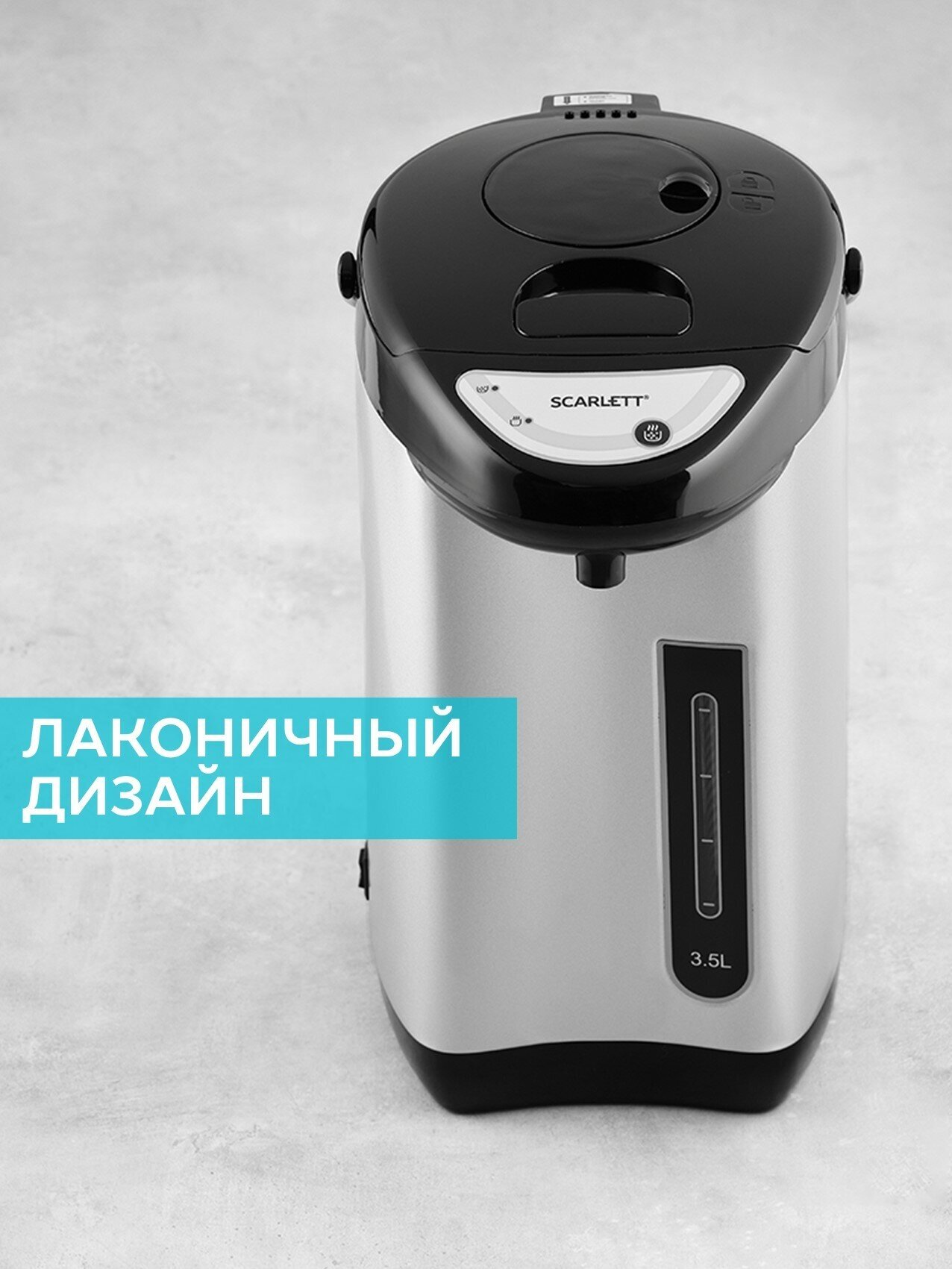 Термопот на 3,5 л, ручной насос, SCARLETT SC-ET10D01, 750 Вт, 1 температурный режим, сталь, черный/серебристый 6 255 ₽