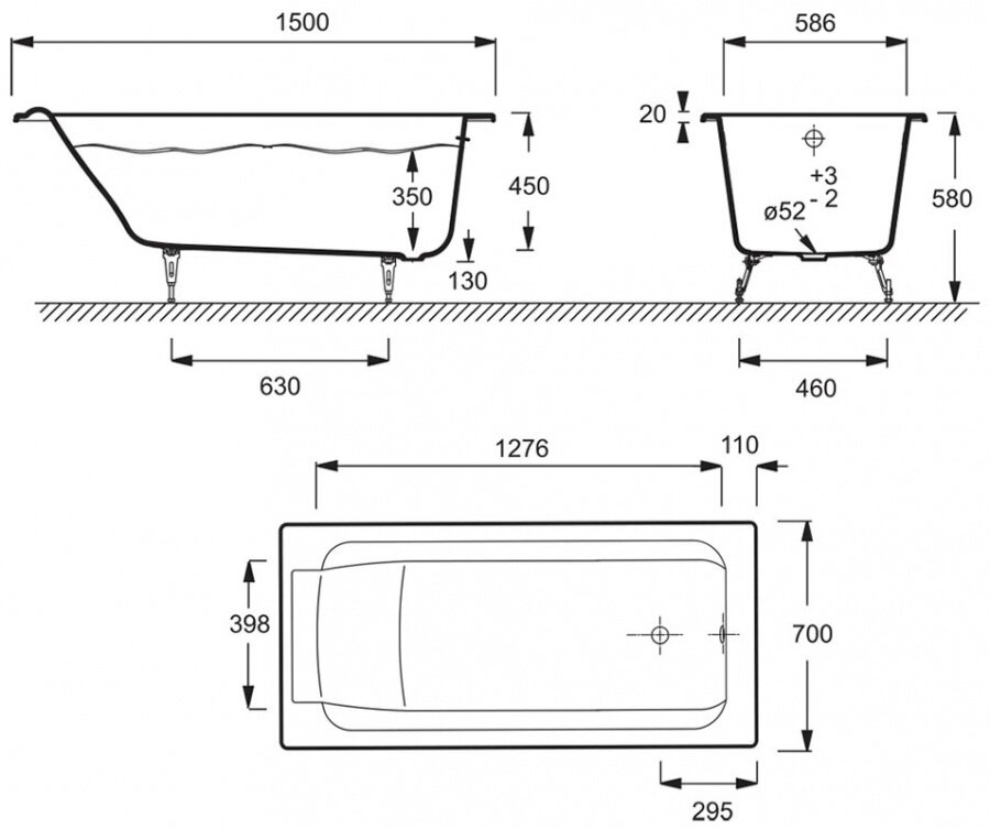 Отзывы на Чугунная ванна Jacob Delafon Parallel, 150 x 70 см, ножки и слив-перелив, цвет белый, E2946-00
