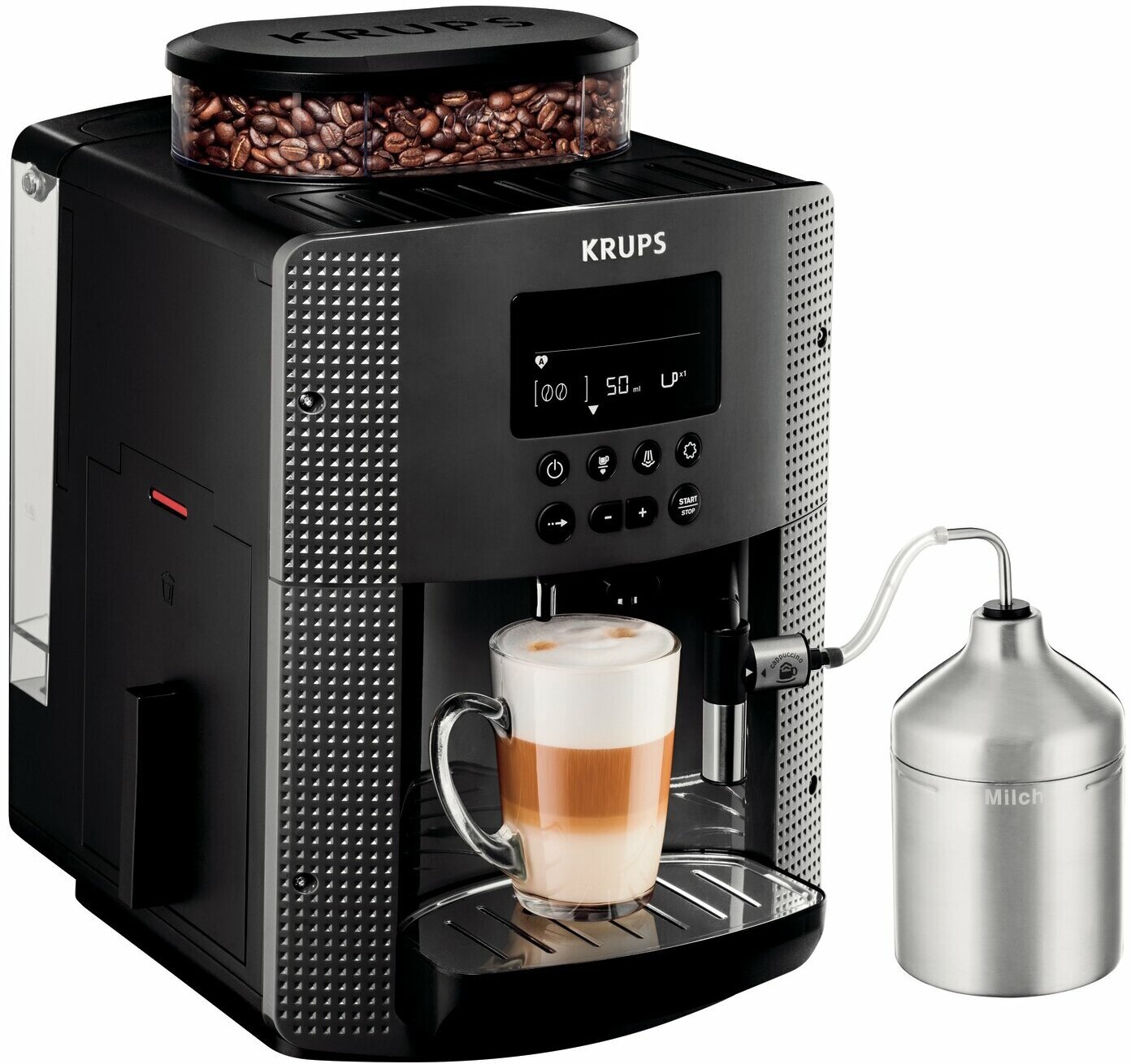 Автоматическая кофемашина Krups Essential EA810870 с LED индикацией, паровое сопло для пены, металлические жернова