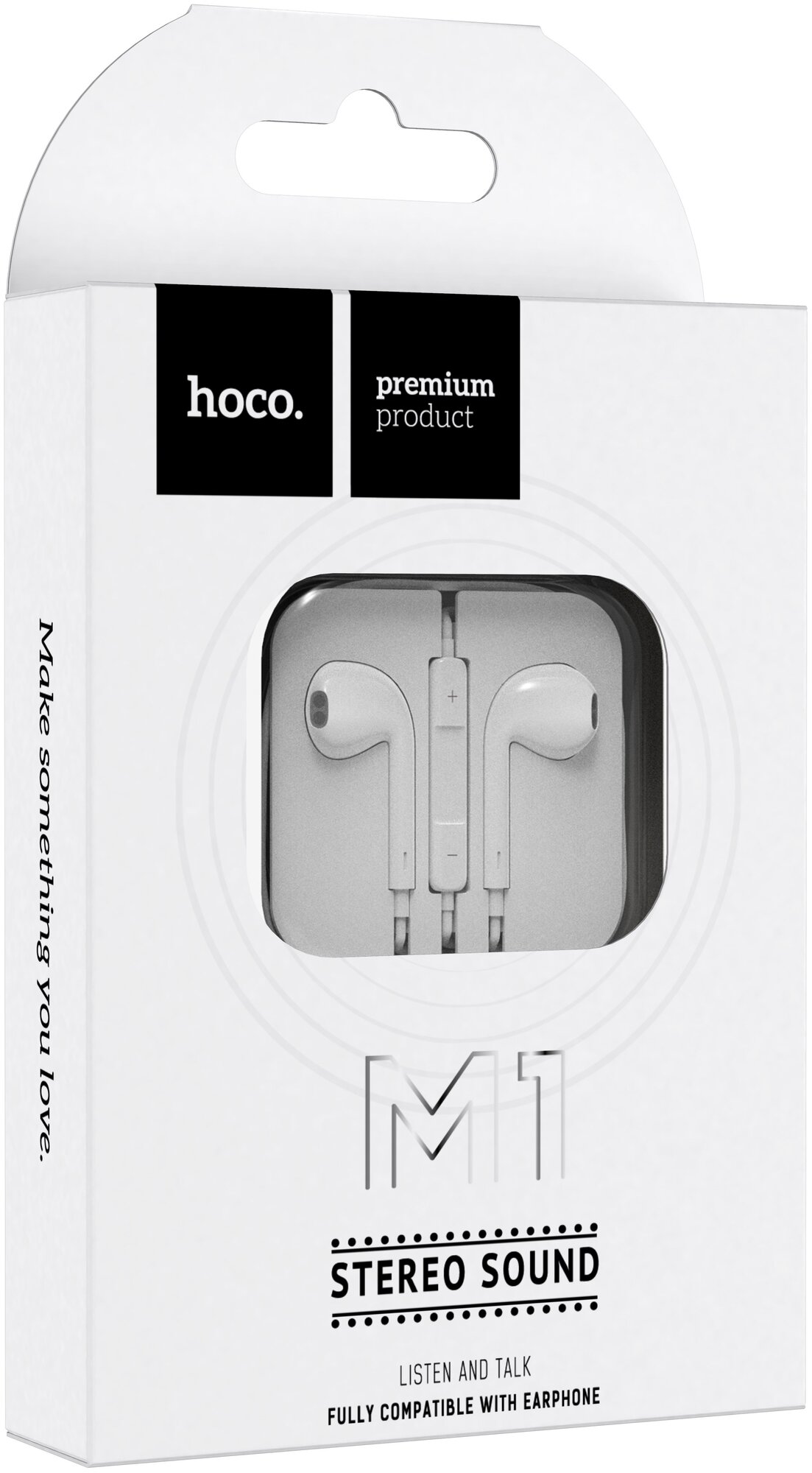 Наушники Hoco M1, проводные, вкладыши, микрофон, Jack 3.5, 1.2 м, белые
