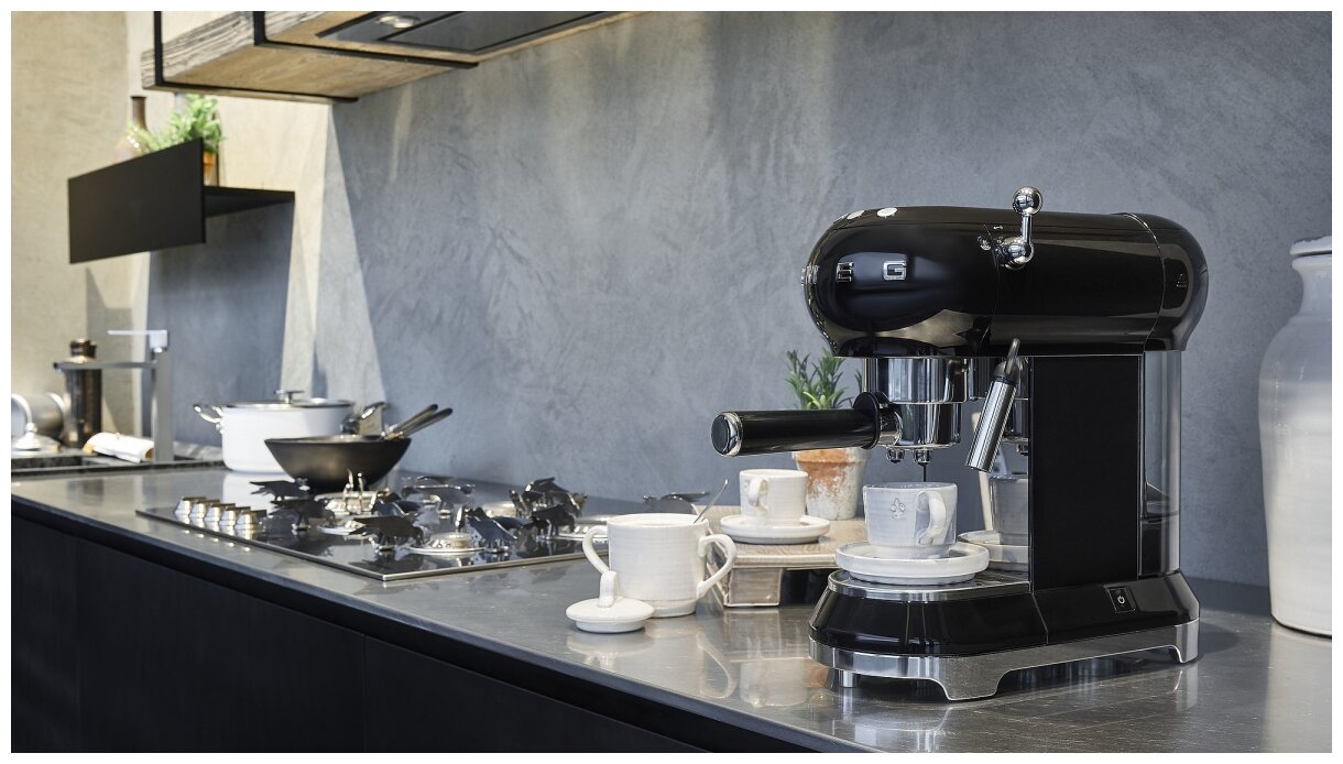 Кофемашина-эспрессо SMEG/ стиль 50-х годов, Материал корпуса: окрашенный металл + цветной пластик, Капучинатор из нерж. стали,