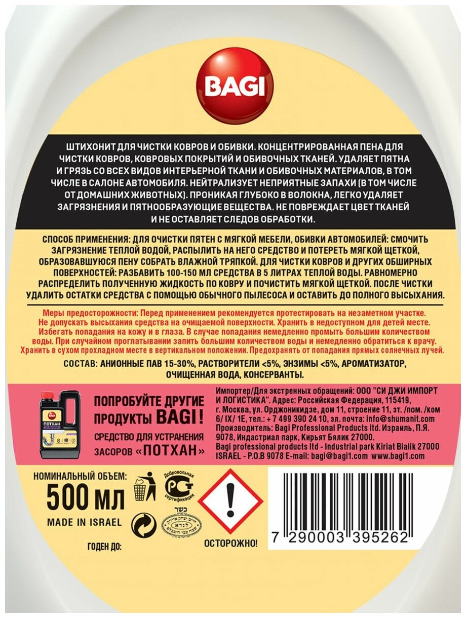 Средство для чистки ковров и мягкой мебели 500 мл BAGI штихонит, распылитель