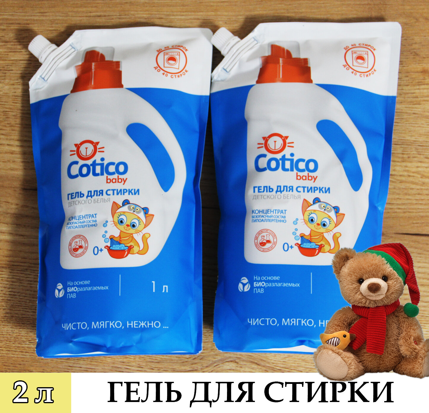 Гель для стирки детского белья, гипоаллергенный 1 л. 2 уп. Cotico информация: