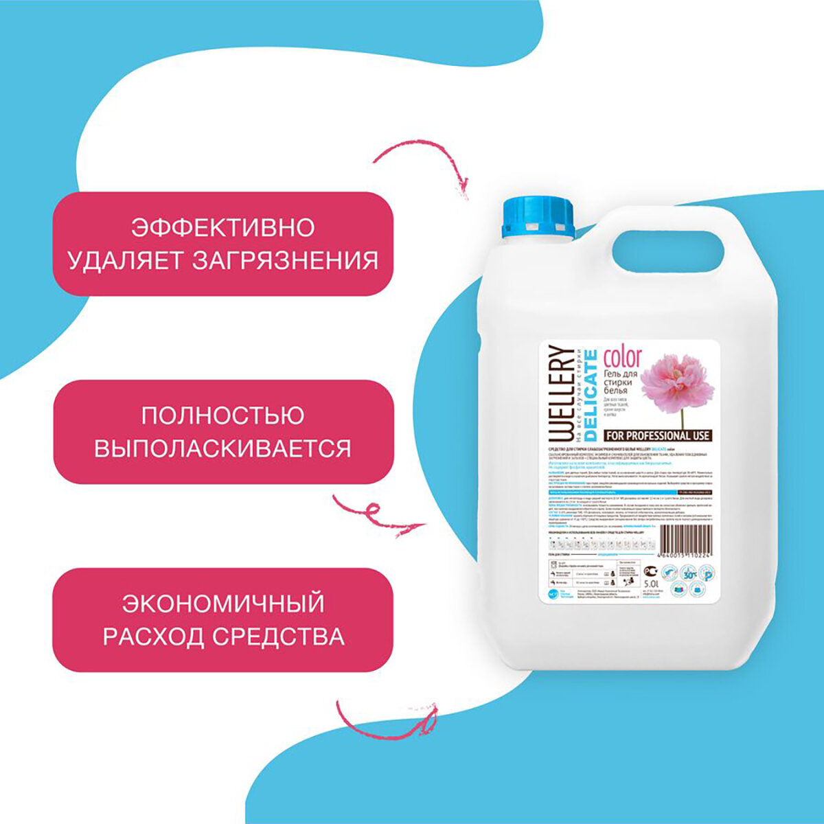 Гель для стирки WELLERY DELICATE COLOR для деликатной стирки цветных вещей, 5 л информация: