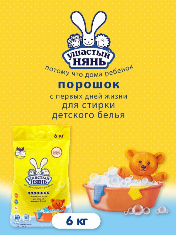 Стиральный порошок "Ушастый Нянь", для детского белья, 6 кг информация: