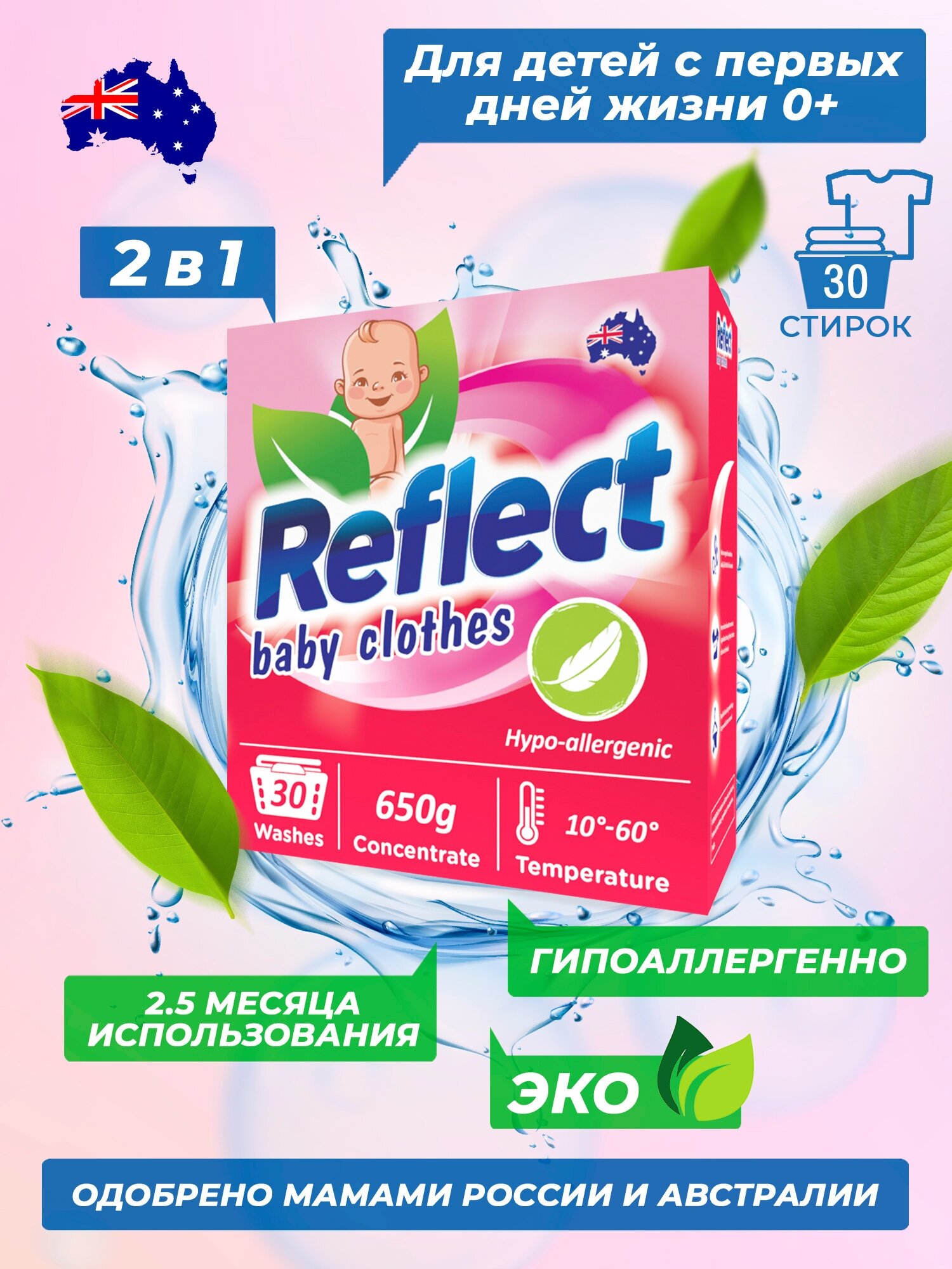 Концентрированный стиральный порошок Reflect Baby Clothes для стирки детского белья, 1 пачка 650 г, 30 стирок
