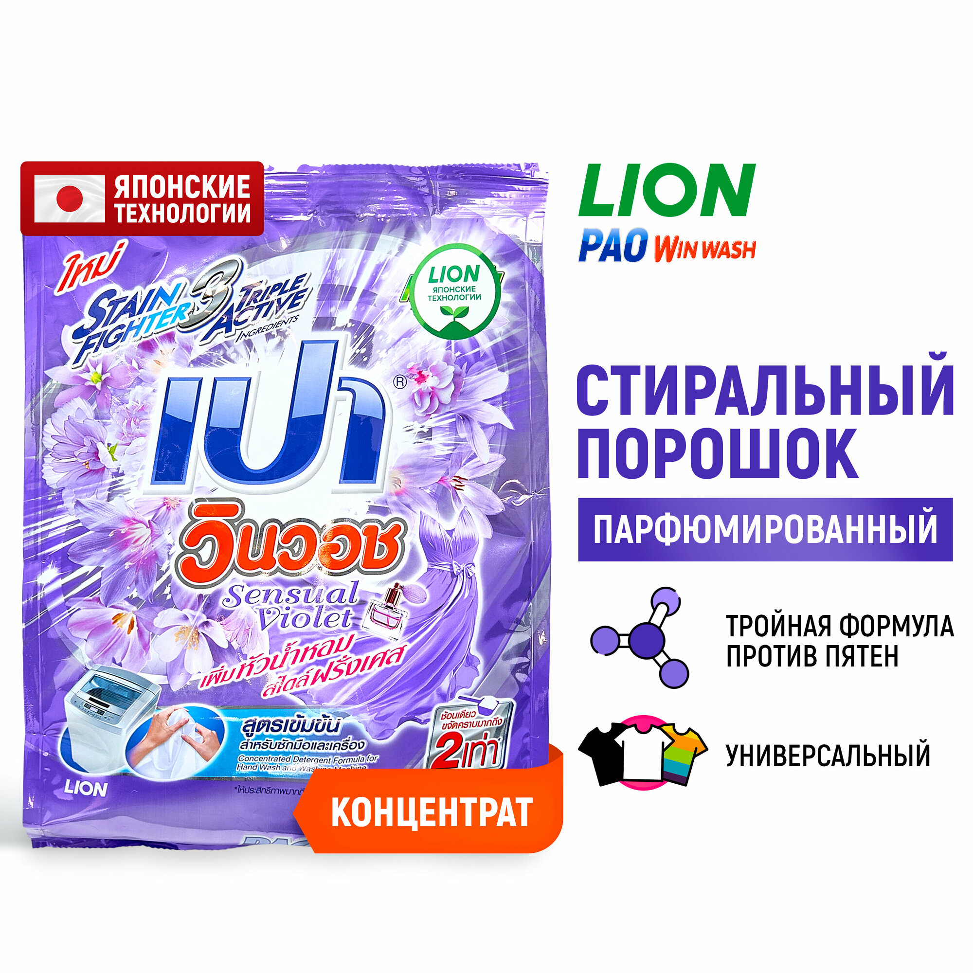 10 цен на LION Стиральный порошок концентрат Pao Win Wash Sensual Violet для стирки белого и цветного белья, против пятен, парфюмированный 800 г