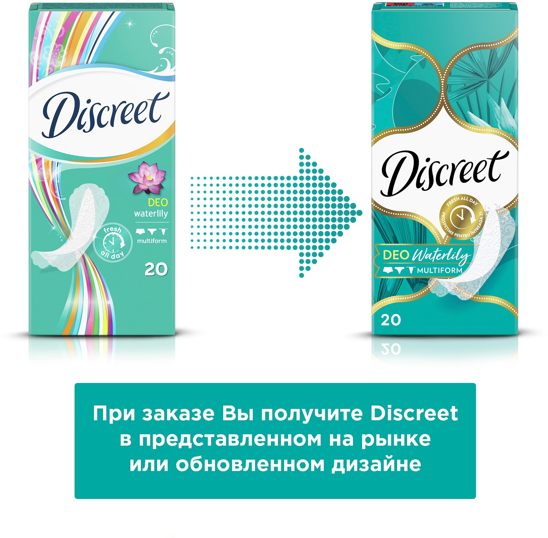 Discreet Женские ежедневные прокладки multiform водная лилия, 60 шт., 2уп.