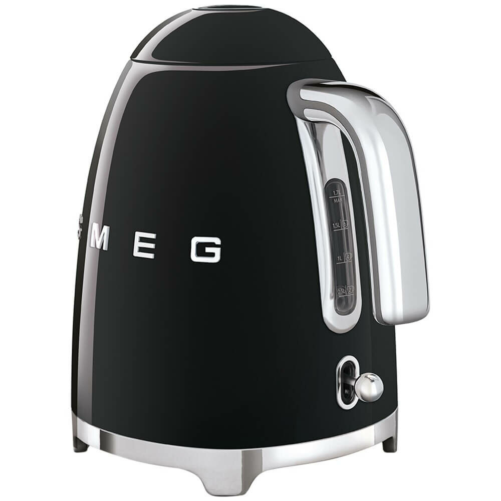 Электрический чайник Smeg Стиль 50-х г., чайник электрический, 1.7 л, 2400 Вт, корпус из нержавеющей стали, черный KLF04BLEU