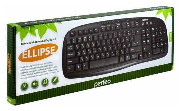 10 цен на Клавиатура Perfeo беспров. "ELLIPSE" Multimedia, USB, чёрная
