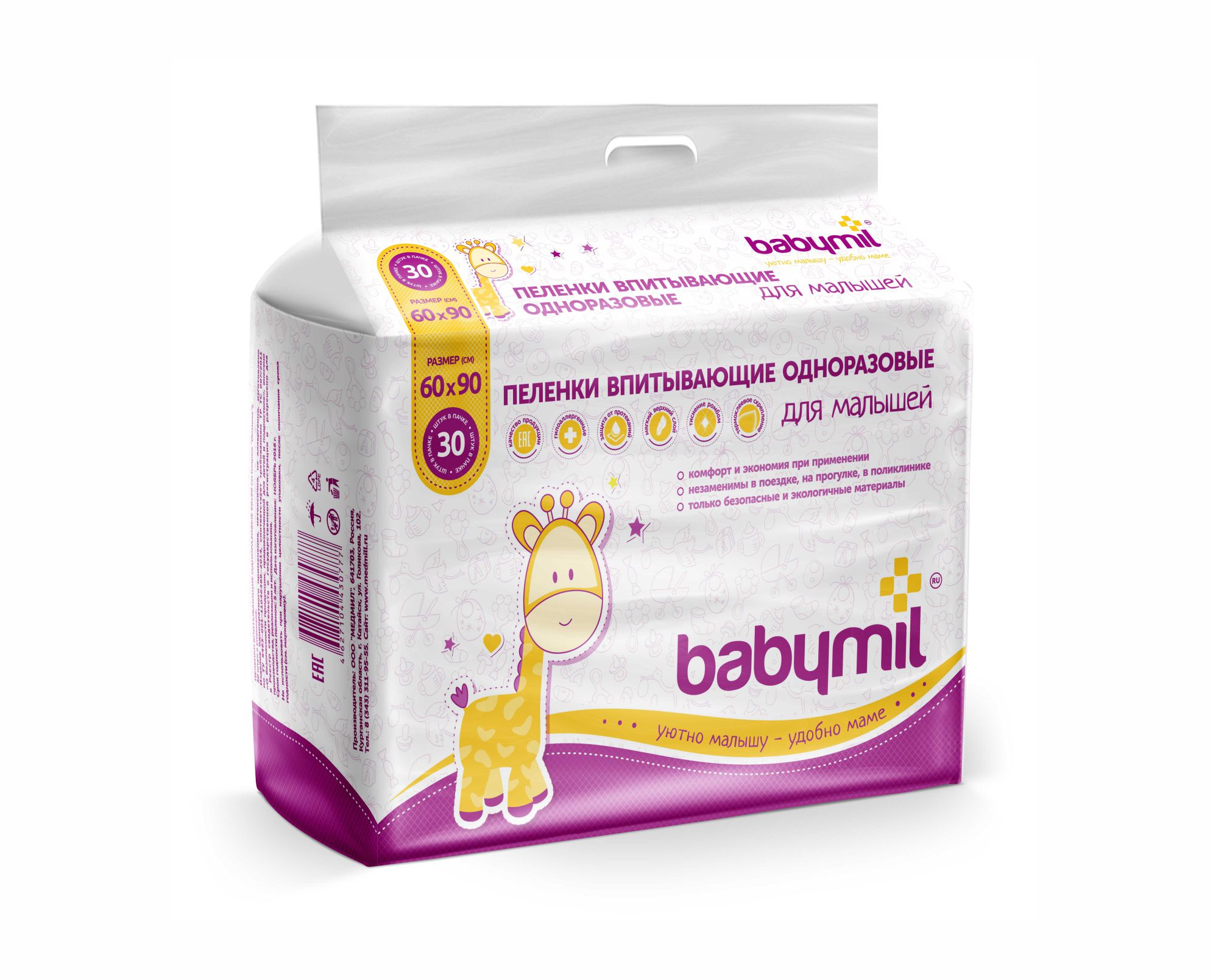 10 цен на Пеленки одноразовые впитывающие BABYMIL 60х90см 30 шт