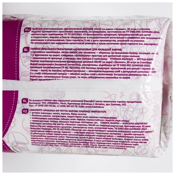 Пеленки впитывающие одноразовые Эконом, 60*40, 30 шт