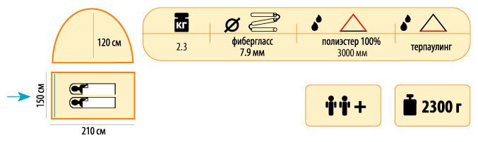 | Ширина внешней палатки | 150 см |