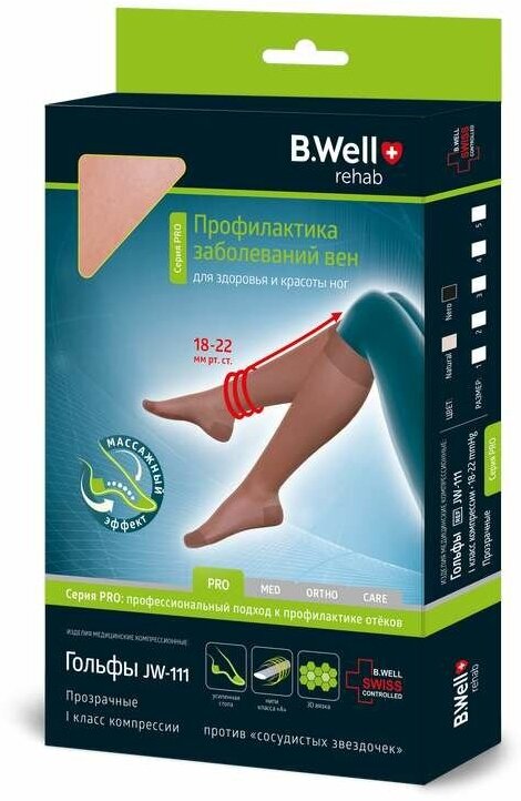 B.Well rehab JW-111 / Би Велл - компрессионные гольфы (1 класс, 18-22 мм рт. ст.), №2, телесные 1 828 ₽