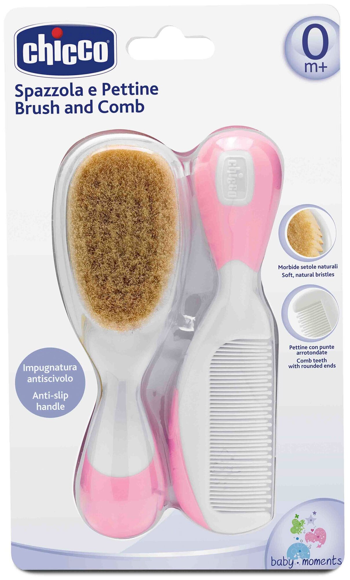 Chicco Набор расческа и щётка с натуральными щетинками 0+мес розовый 1 шт