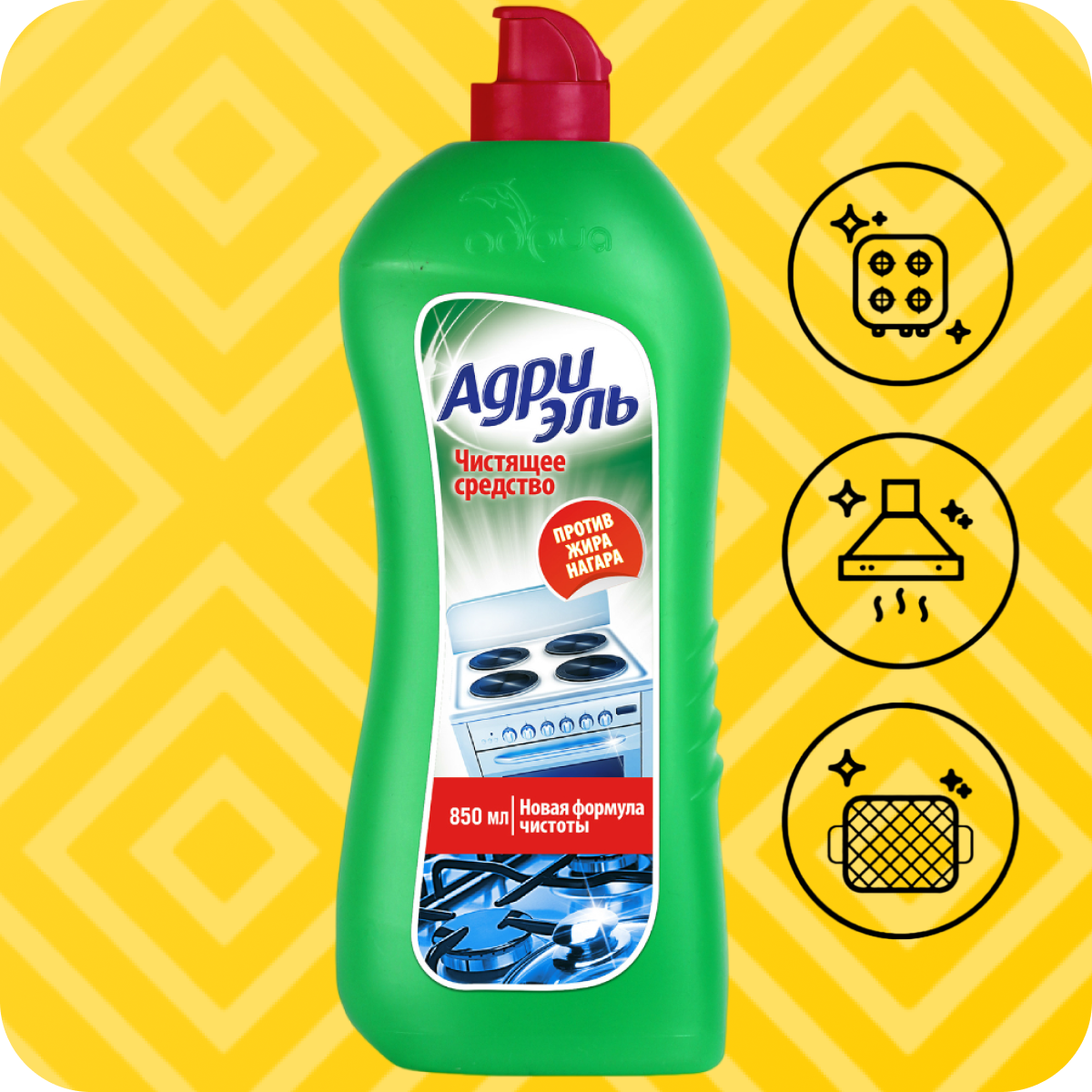Адриэль чистящее средство для плит кухонного оборудования и посуды, 850 мл