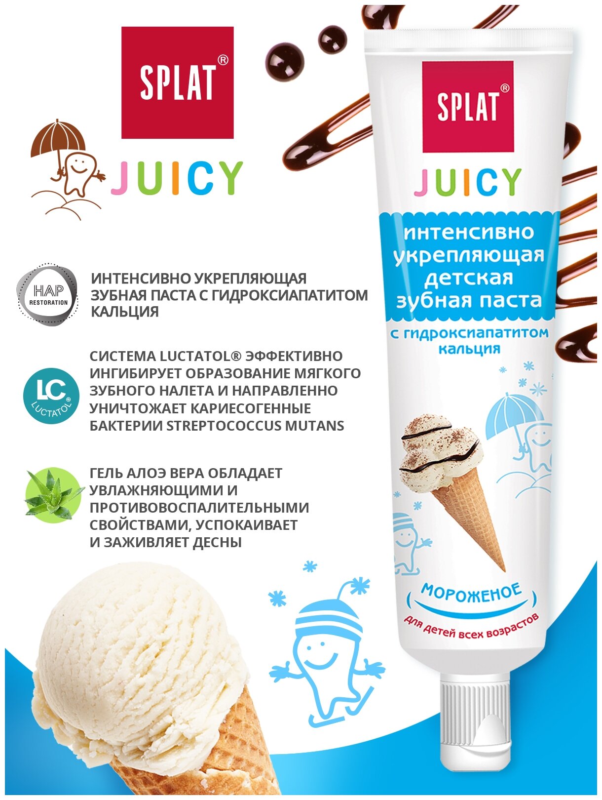 Детская зубная паста Splat Juicy «Мороженое», с гидроксиапатитом, 35 мл